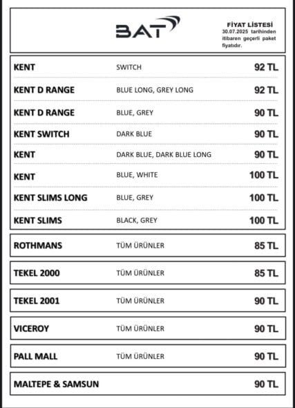 Şimdilik BAT grubu dahil olmak üzere tüm Türkiye’deki güncel sigara fiyatları şurada.