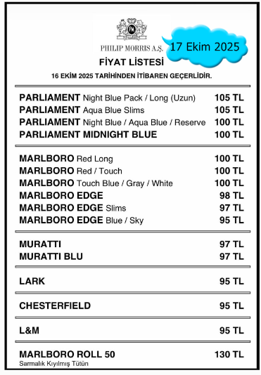 2025 yılı en son yapılan zamdan sonra Ekim ayı Marlboro satış ücreti 95 – 100 TL arasında olmuştur.